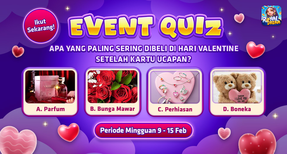 Event Mingguan Sosial Media 9 – 15 Februari | Event Quiz Valentine Royal Dream